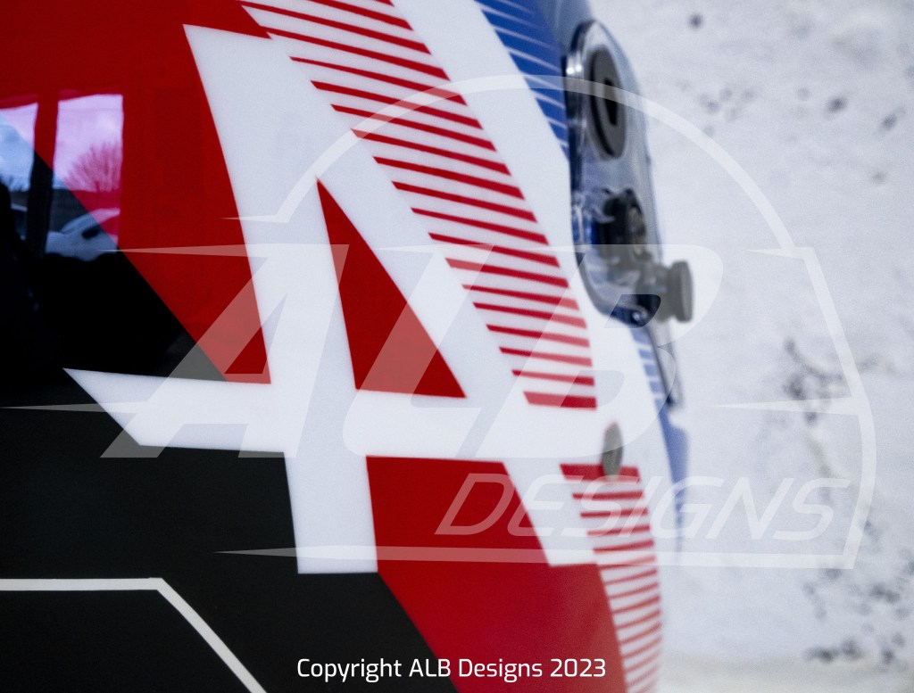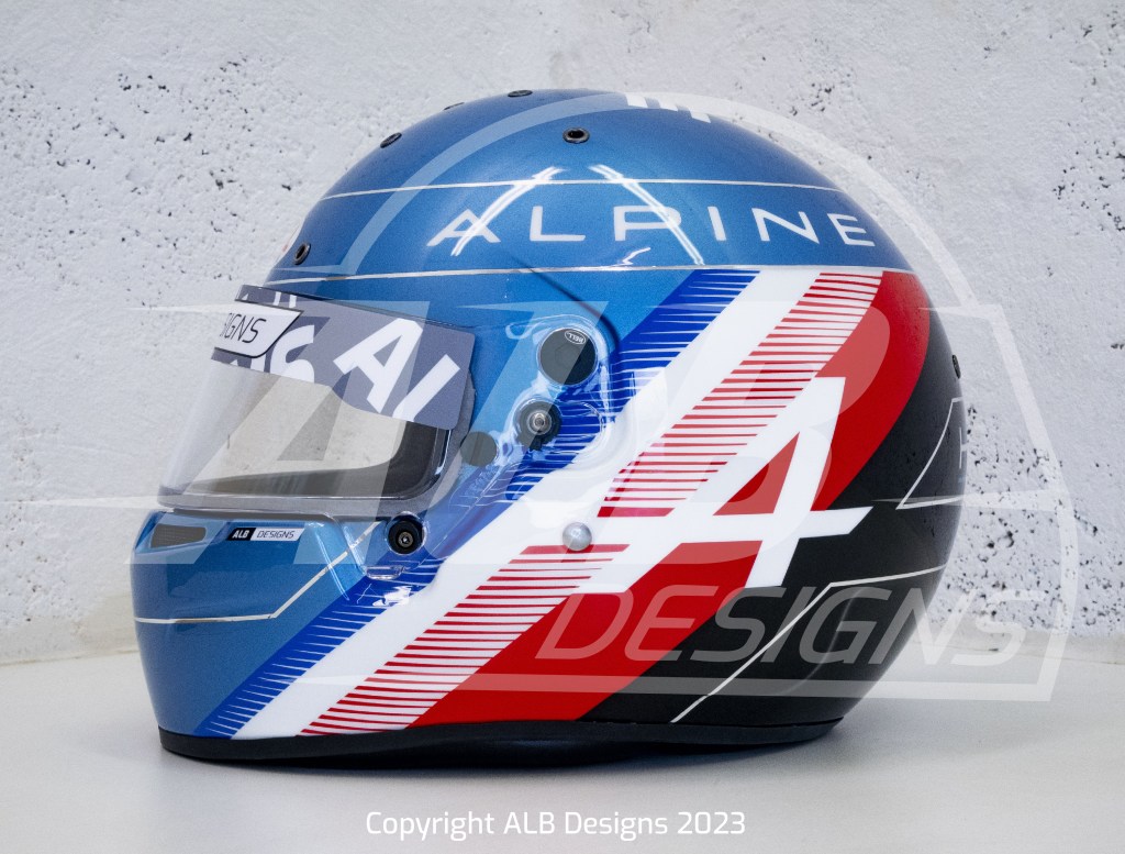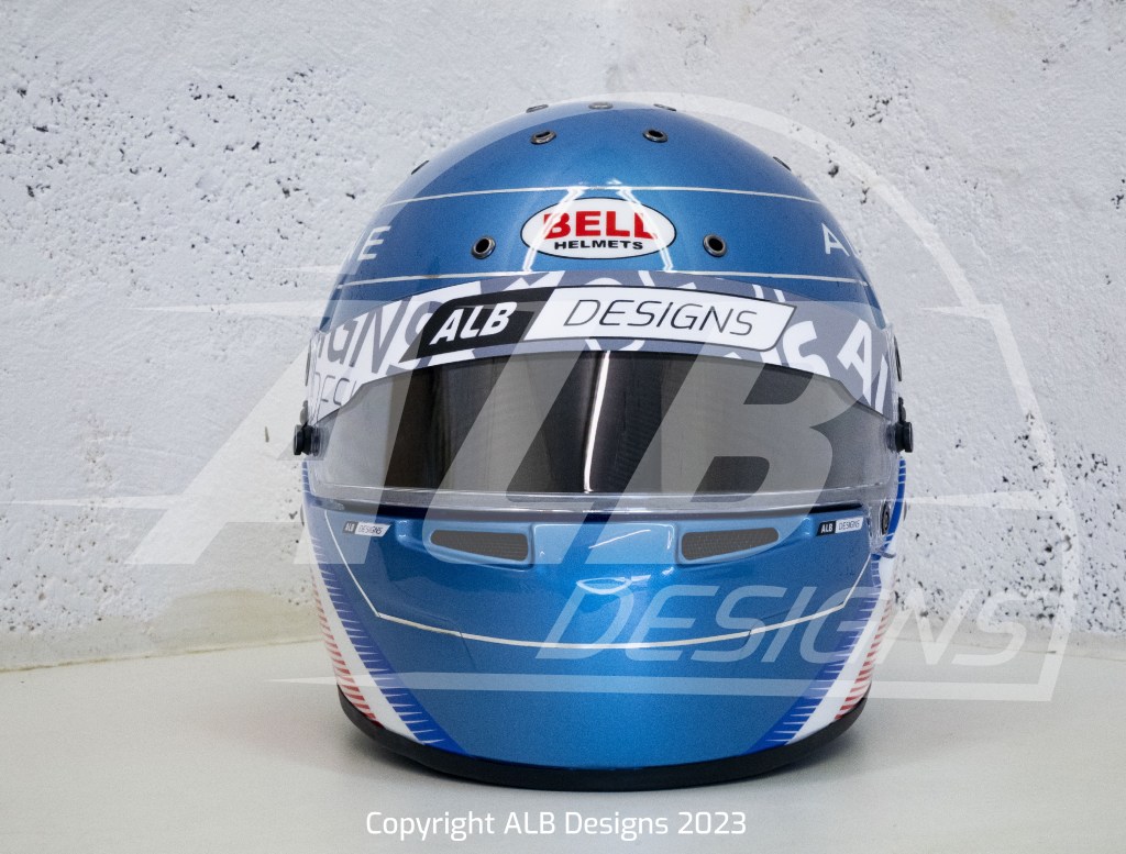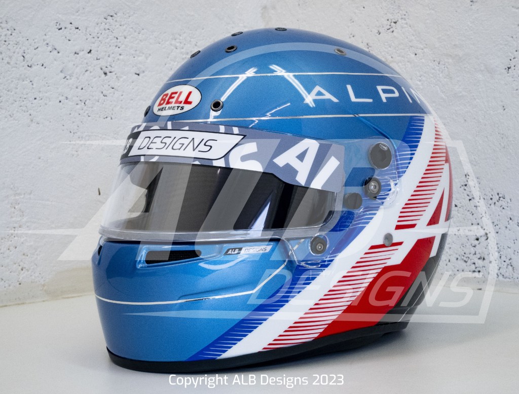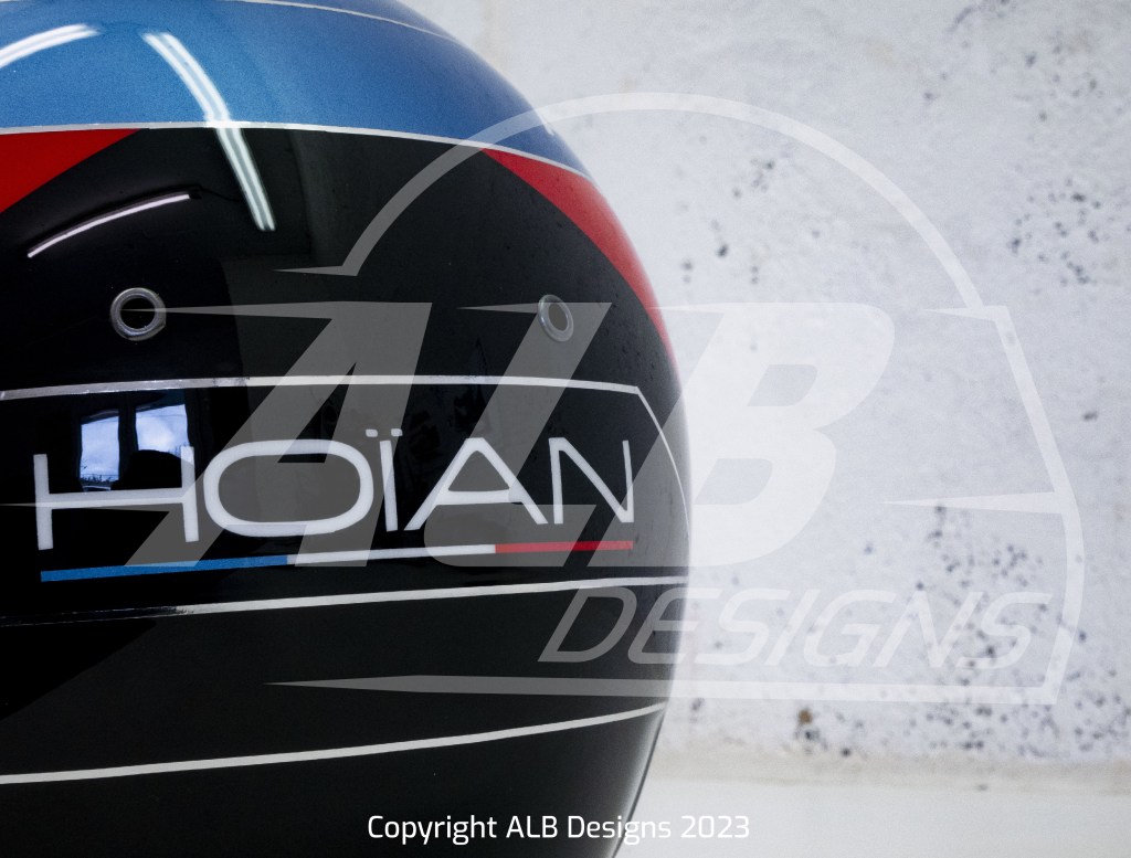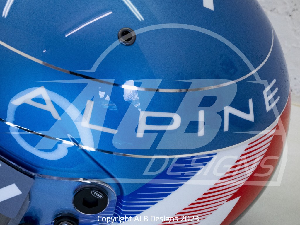 Création design et peinture sur un BELL KC7 CMR, options bleu berlinette et filets métalliques chrome
