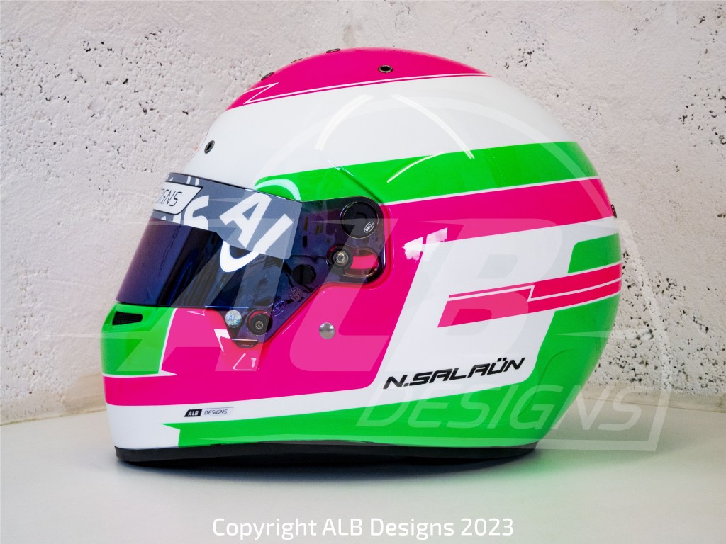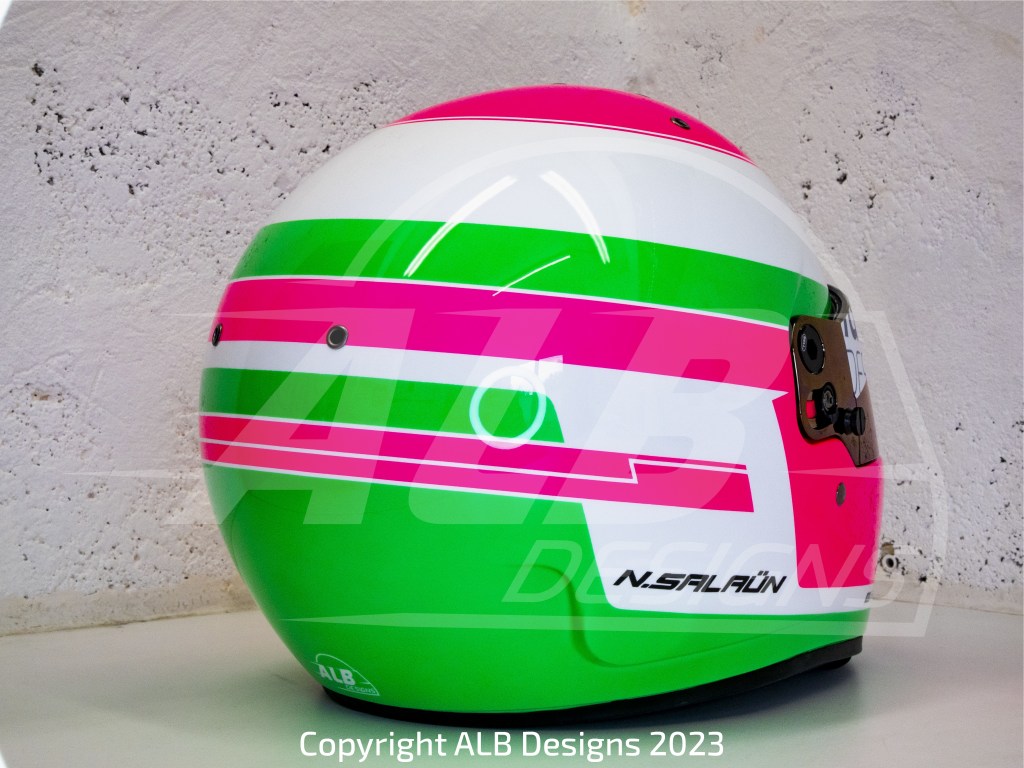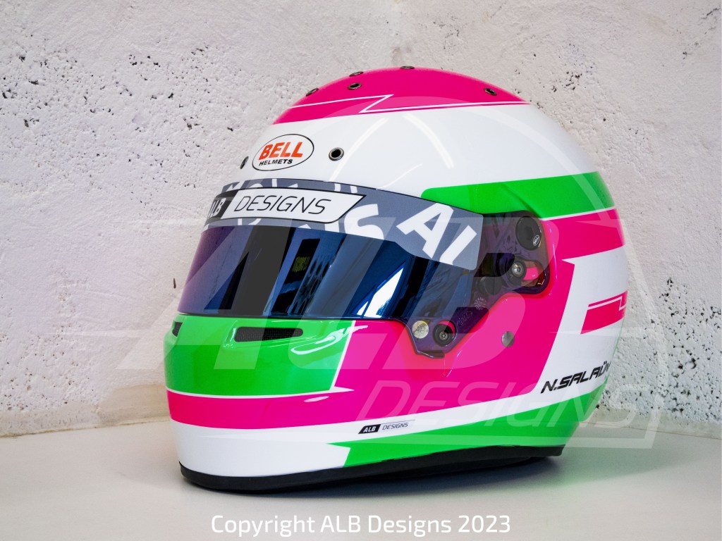 Création design et peinture sur un BELL RS7 K, options vert fluo, rose fluo