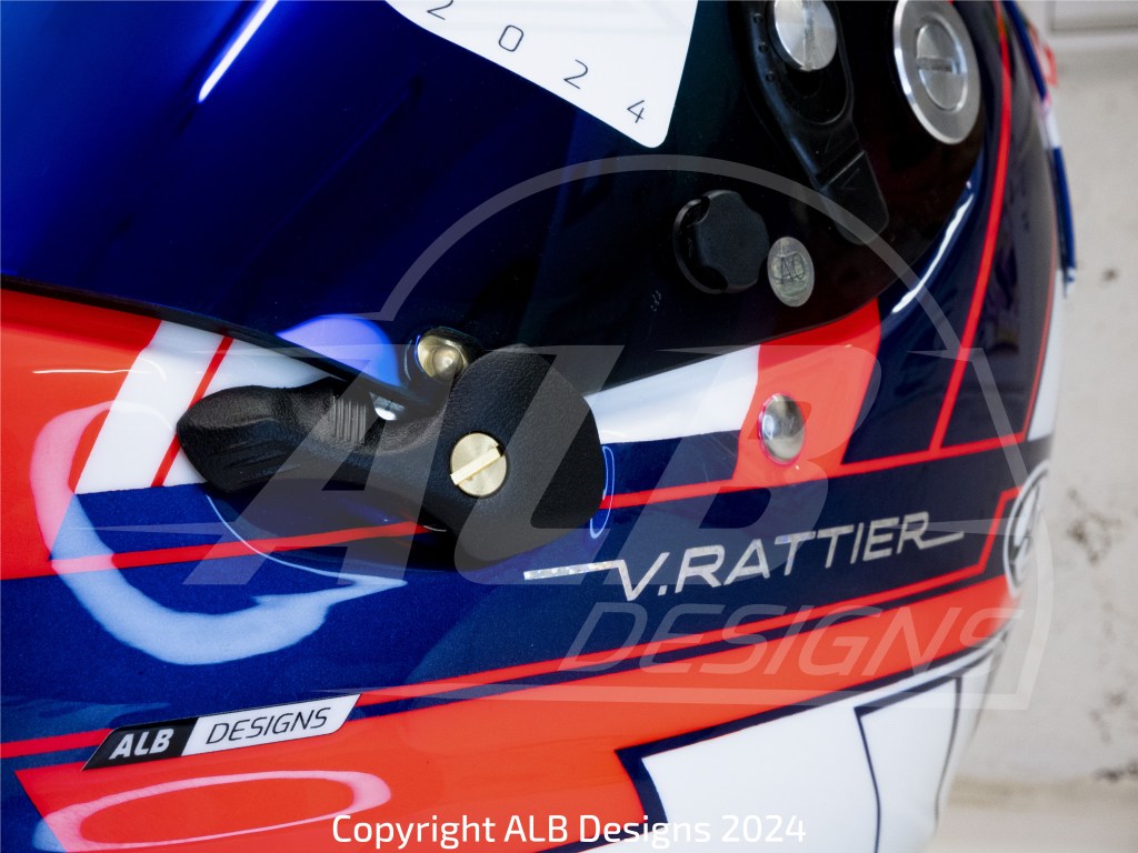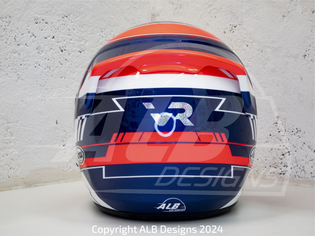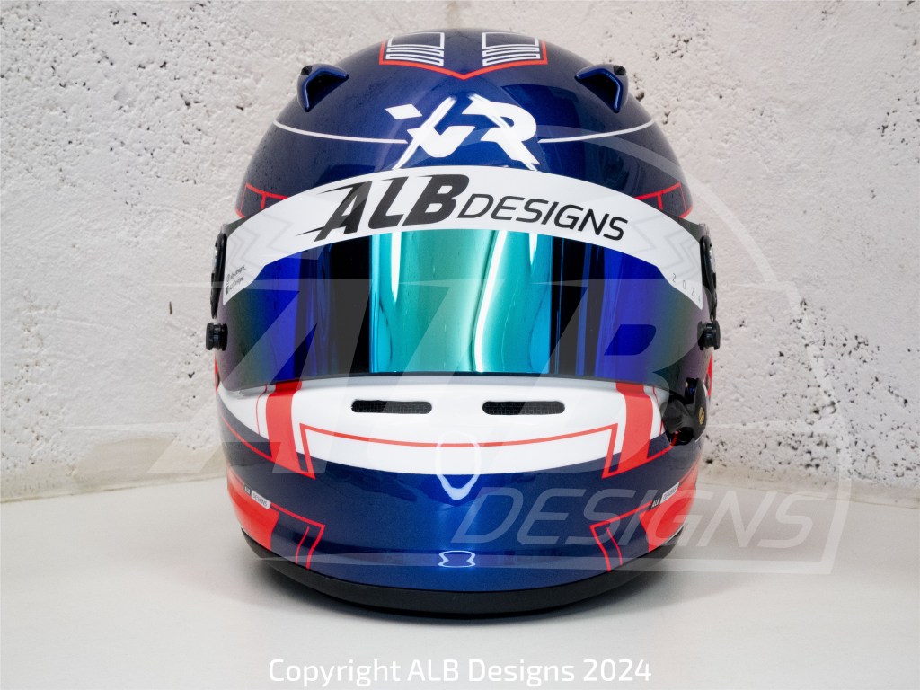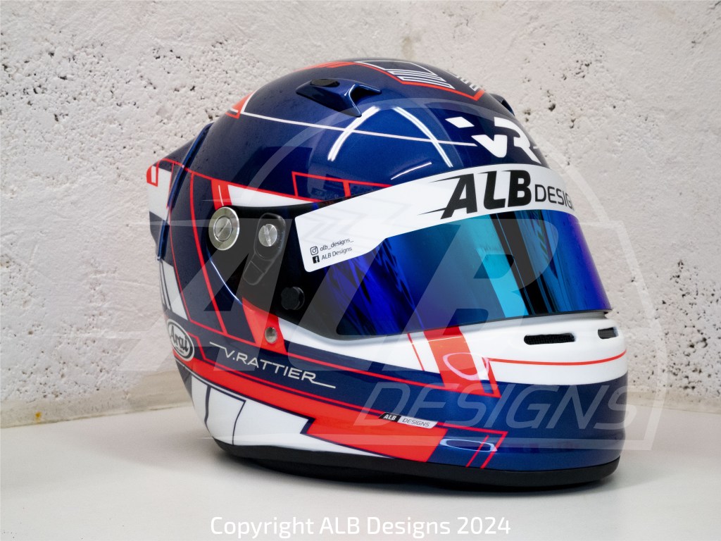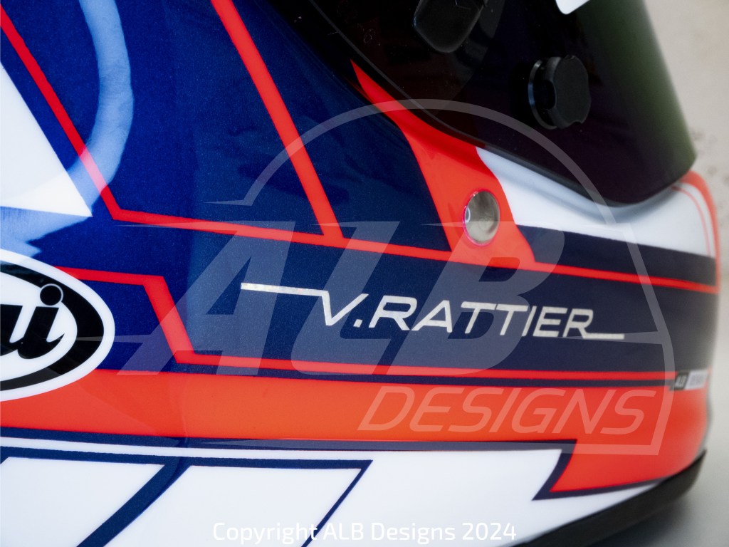Création design et peinture sur un ARAI SK6, options bleu nuit nacré, rouge fluo, reproductions de logos, holographique et aileron peint